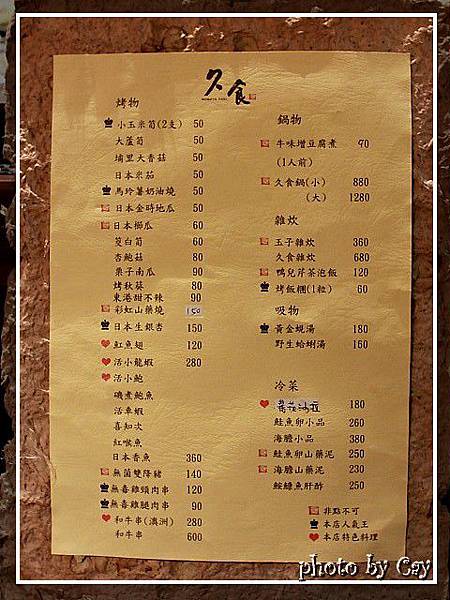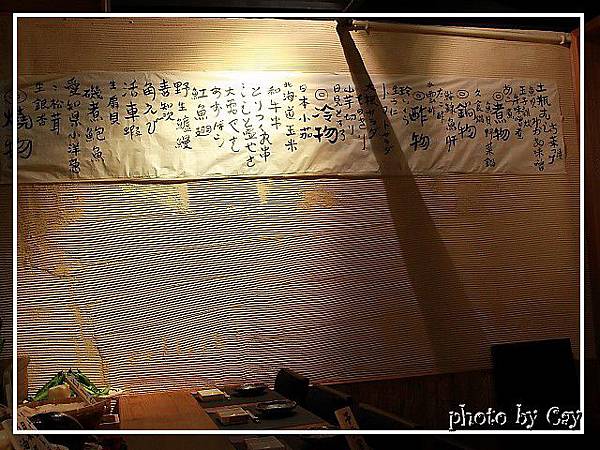 很有fu的牆面菜單... 但不是每一樣都有... (像是松茸, 和牛<最近瘦肉精爭議太大...>)