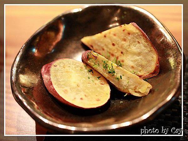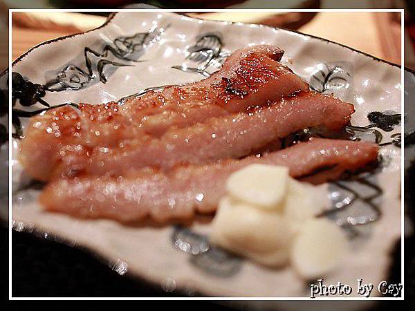 使用這很日本位的盤子裝盤, 很沉呢~~ 烤得皮酥內軟...